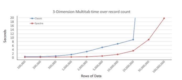 图:传统数据引擎(Classic)与新一代数据引擎(Spectre)的数据处理效率对比(多重表)