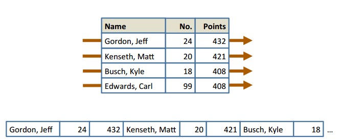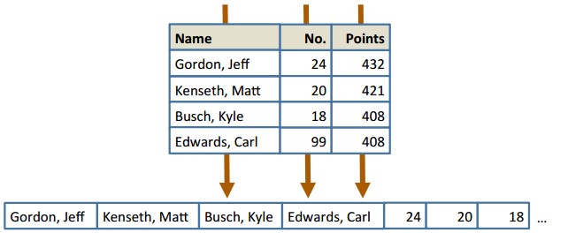 传统数据模型是通过行记录方式进行数据存储,如下图所示: